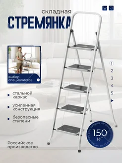Стремянка лестница для дома с 5 широкими ступенями, 150 кг
