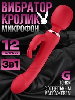 Вибратор кролик 3 в 1 микрофон двухсторонний