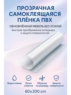 Прозрачная самоклеящаяся плёнка ПВХ 60×200 см для мебели