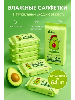 Набор влажных салфеток с авокадо 64 шт без спирта