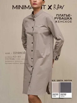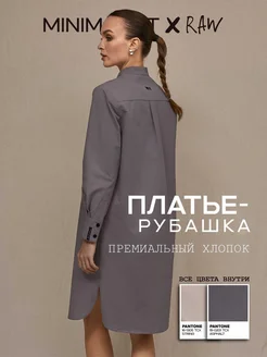 Платье рубашка с длинным рукавом с поясом светло-серый