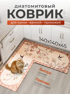 Коврик на кухню для пола безворсовый диатомитовый угловой