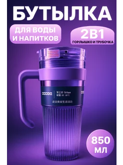 Бутылка кружка с трубочкой ручкой заварник из Тритана 850 мл