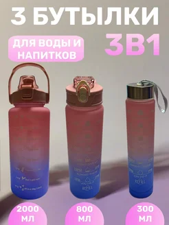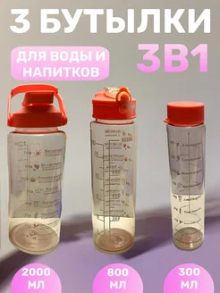 Бутылки для воды 3 штуки с ручкой спортивные набор