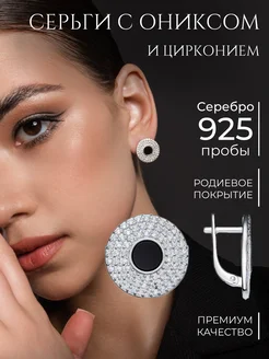 Серебряные серьги круглые с ониксом