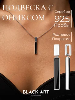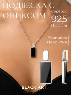 Прямоугольная подвеска из серебра с чёрным камнем ониксом