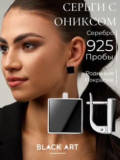 Серебряные серьги с квадратным ониксом