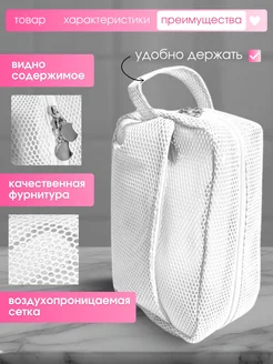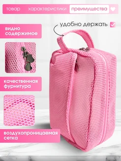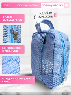Косметичка прозрачная сетчатая дорожная с ручкой