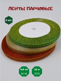 Ленты парчовые с золотистым люрексом 0,6 см*22 м 3 шт