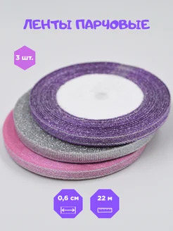 Ленты парчовые с серебристым люрексом 0,6 см*22 м 3 шт