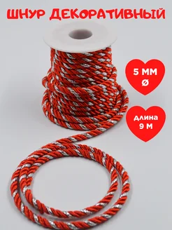 Шнур декоративный для рукоделия витой 5 мм*9 м с люрексом