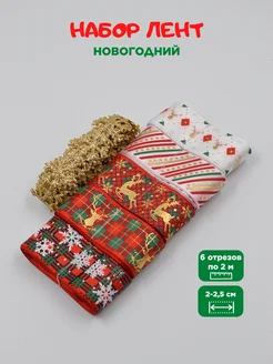 Набор новогодних лент для рукоделия 6 шт. по 2 м
