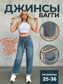 Джинсы широкие женские багги с лампасами