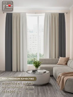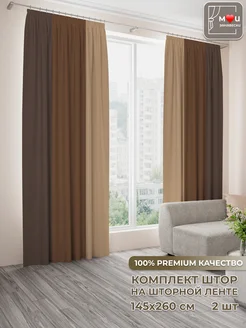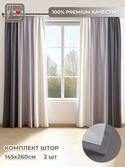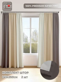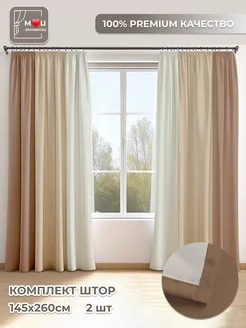 Шторы трехцветные в спальню и гостиную длинные 2 шт 145х260