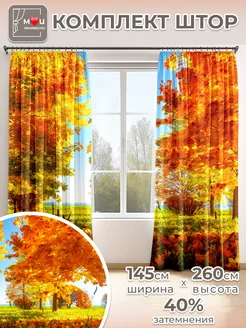 Фотошторы Осень в спальню и гостиную 2 шт 145х260 см