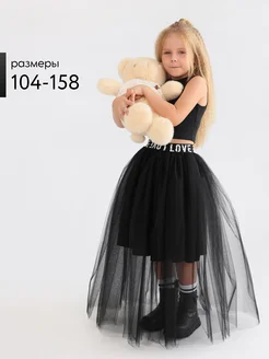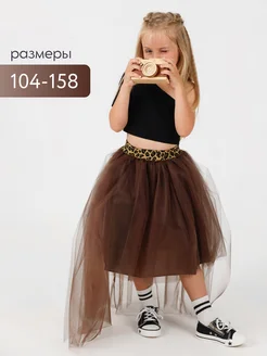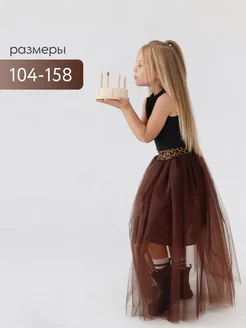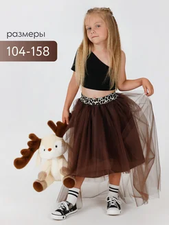 Юбка пачка из фатина пышная празд пояс корич леоп макси