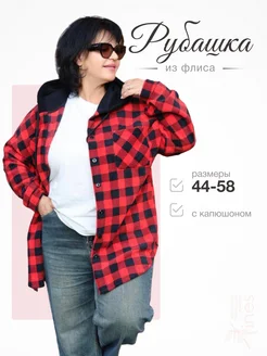 Рубашка женская теплая с капюшоном удлиненная в клетку флис