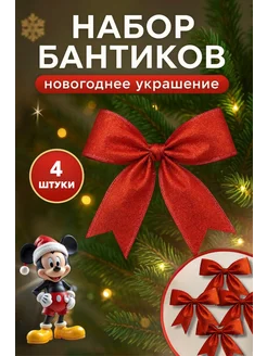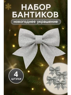 Новогодние бантики на елку, елочные игрушки 4 шт