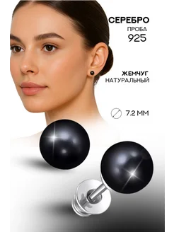 Серьги гвоздики серебро 925 Жемчуг черный натуральный