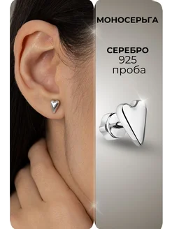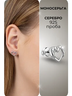 Моносерьга серебро 925 гвоздик Сердце 1 шт