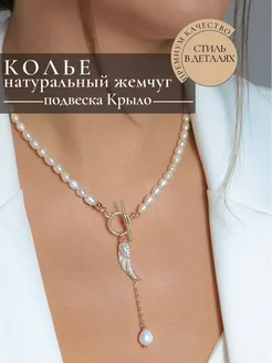 6033 Авторское жемчужное колье с подвеской крыло ангела top