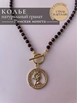 6065 Праздничное колье с натурального граната и кулон монета