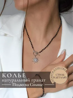 6330 Праздничное колье из природных гранатовых камней солнце