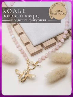6102 Необычное колье розовый кварц с ярким кулоном шмель A++