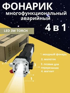 многофункциональный аварийный фонарик 4 в 1 LED 3W TORCH