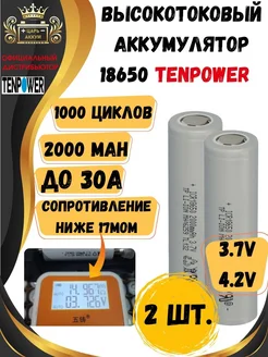 Высокотоковый аккумулятор TenPower ICR 2000 mAh 1шт