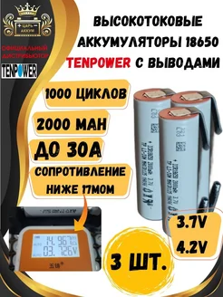 Высокотоковые акб с выводами TenPower ICR 2000 mAh 3шт