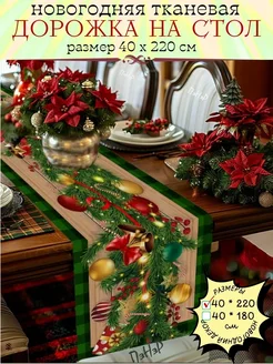 Дорожка на стол новогодняя тканевая 220 см новый год декор