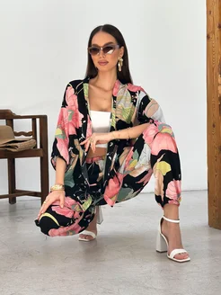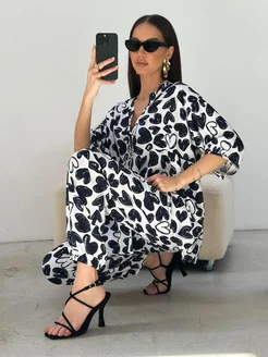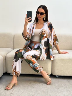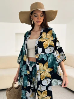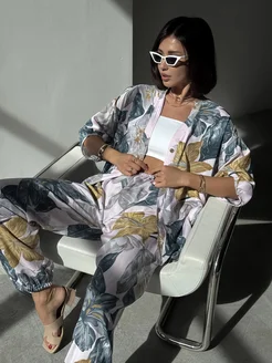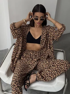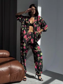 Хлопковый домашний костюм со штанами и рубашкой пижама