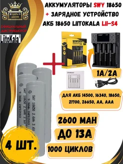 Аккумулятор SWY inr 18650 2600 mAh 4шт. + зарядноее lii-s4