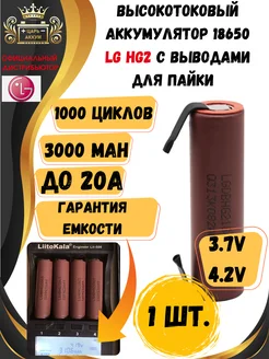 Высокотоковый аккумулятор 18650 LG HG2 c выводами 1шт