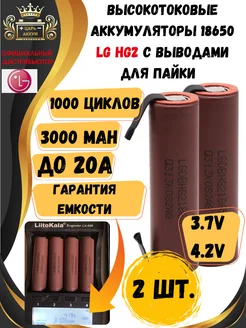 Высокотоковые аккумуляторы 18650 LG HG2 c выводами 2шт