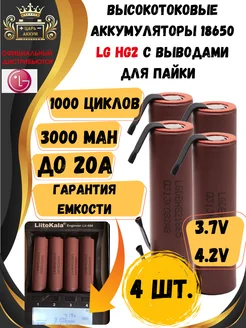 Высокотоковые аккумуляторы 18650 LG HG2 c выводами 4шт