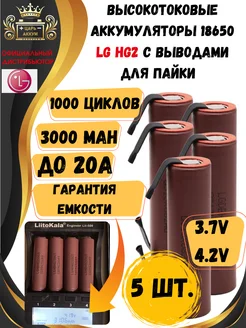 Высокотоковые аккумуляторы 18650 LG HG2 c выводами 5шт