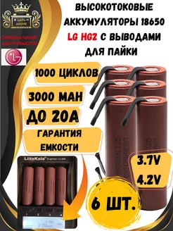 Высокотоковые аккумуляторы 18650 LG HG2 c выводами 6шт