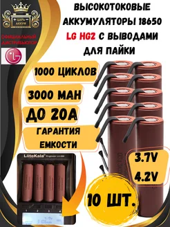 Высокотоковые аккумуляторы 18650 LG HG2 c выводами 10шт