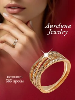Кольцо с камнями бижутерия с позолотой 585