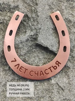 Медная подкова на дверь "7 ЛЕТ СЧАСТЬЯ" 7 см