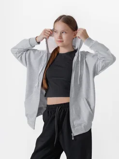 Зип худи с капюшоном на молнии серый