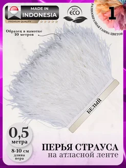 9200 Перья страусиные 8-10 см для шляпы холодный белый 50 см