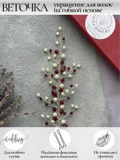 3362 Диадема яркая красная ветка в волосы девушке выпускной