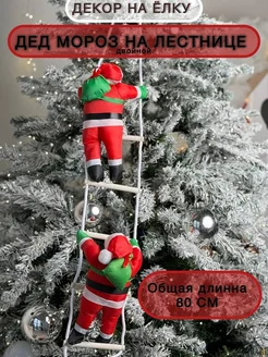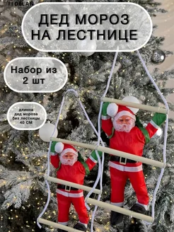 Дед Мороз на лестнице 40см набор 2 шт Елочное украшение