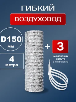 Воздуховод для вытяжки 150 мм 4 м гибкий с хомутами