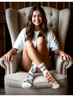 Носки хлопковые высокие с лисой и енотом – комплект 2 пары