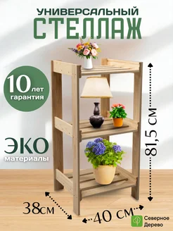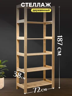 Стеллаж деревянный напольный этажерка с полками