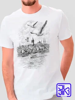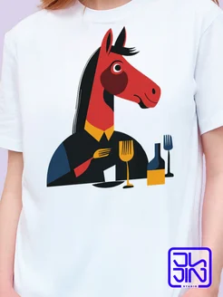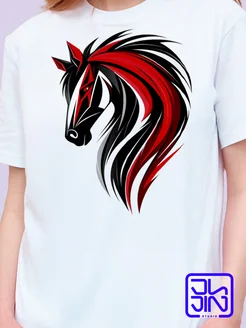 Футболка Геометрическая черно-красная лошадь с бутылкой